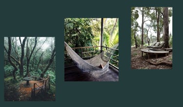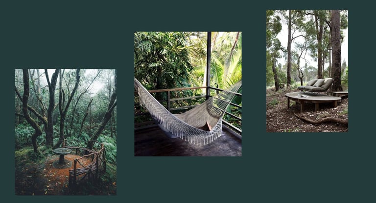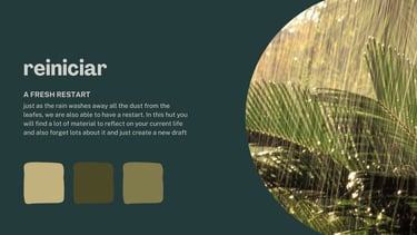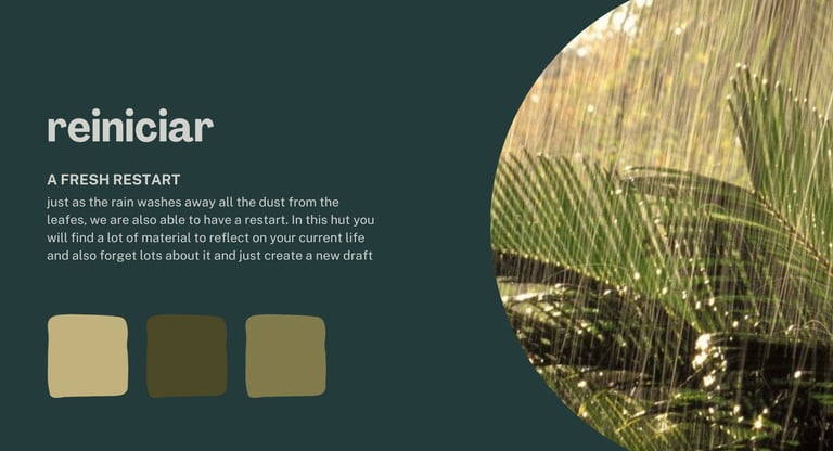 Hier wird der Fokus auf die reinigende Wirkung des Regens gesetzt. Ein Ort zum Reflektieren. Dominiert wird es von beruhigenden Grüntönen.