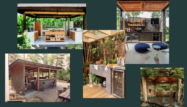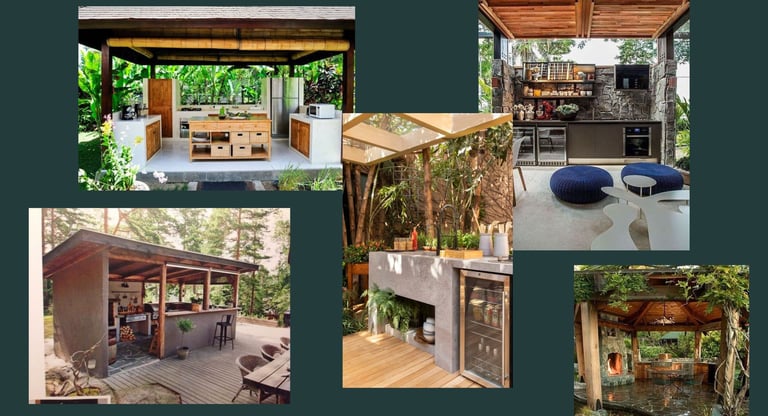 Es gibt eine modern gestaltete Außenküche, die sich harmonisch mit der Natur-Umgebung einfügt. Sie ist mit allem ausgestattet, was die Gäste während ihres Aufenthaltes benötigen. Bei jedem Wetter lässt es sich hier gut kochen.