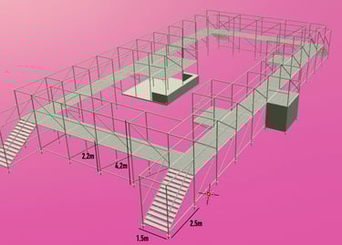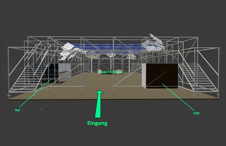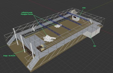 Das Design und Konzept zu der Bühne habe ich Ende 2024 entwickelt und dann über die darauffolgenden Monate hinweg umgesetzt.
